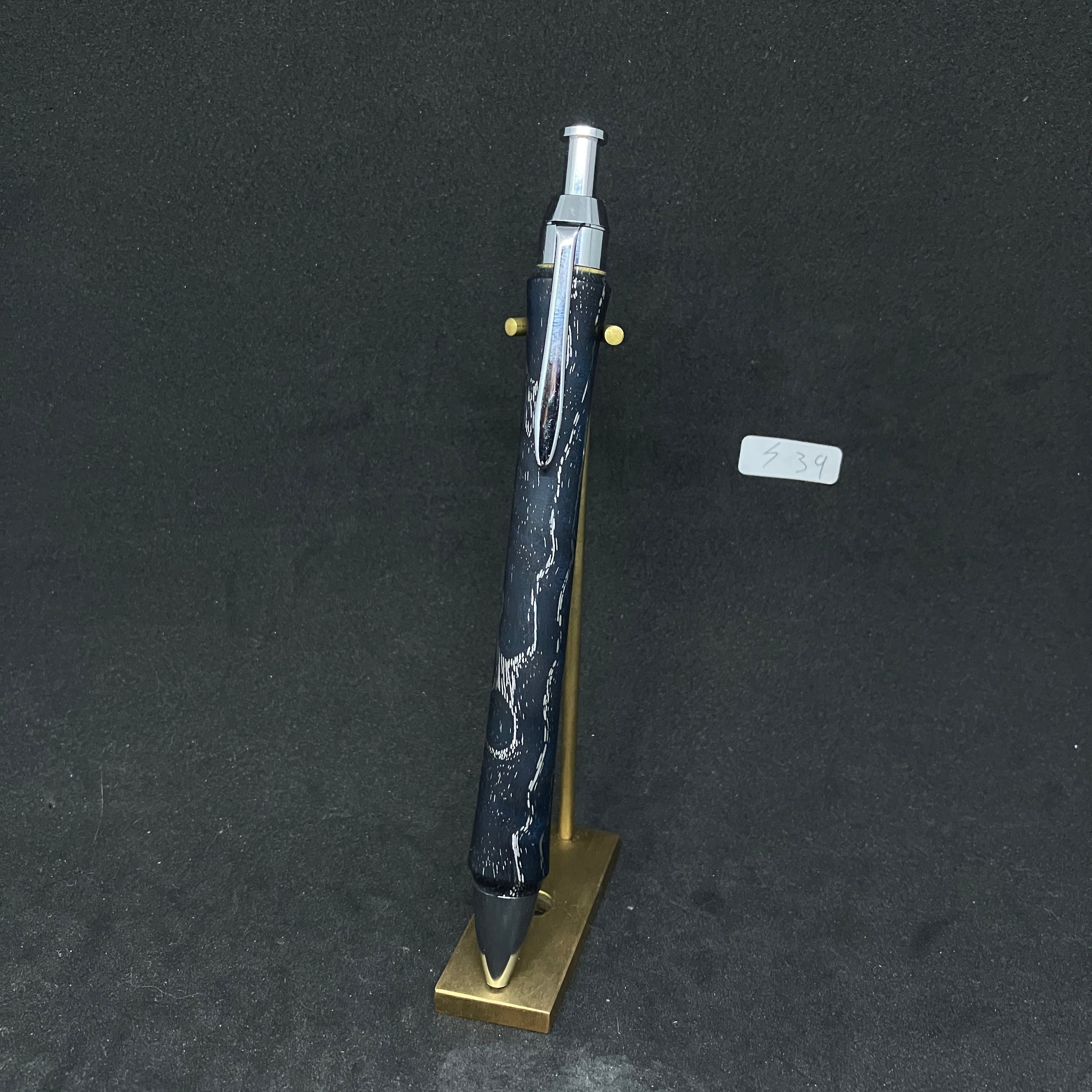S39[メタライズドウッド軸ペン] [藍染タモ] [三神クラフト]